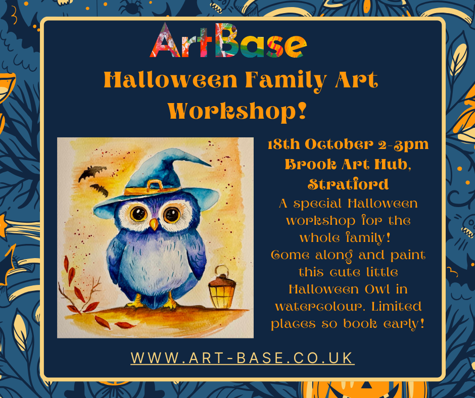 A special Halloween family art class! Watercolour owl at Brook Arts Hub, Stratford upon Avon, 18th October 2-3pm